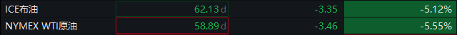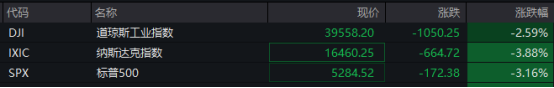 当天,美股三大指数低开,随后跌幅持续扩大,截至发稿,纳指、标普500指数跌幅均扩大至3%以上。此外,国际油价今日再度走低,布油、美油大跌超5%。
